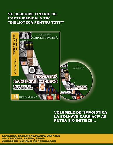 Sambata 19 septembrie 2009 in cadrul Congresului National de Cardiologie ce se desfasoara la Casino-ul din Sinaia se va lansa incepand cu orele 12.25 in sala Baccara volumul "IMAGISTICA LA BOLNAVII CARDIACI".