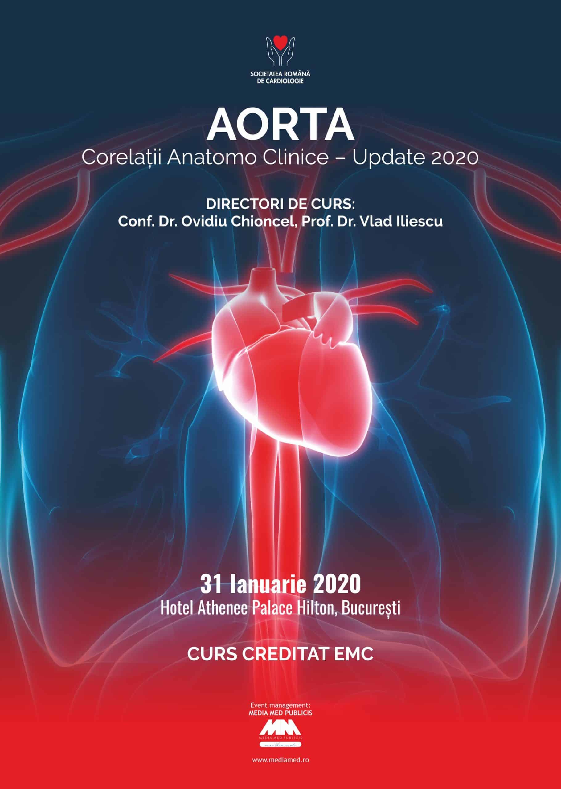 Societatea Română de Cardiologie vă invită să participați la cursul Aorta - Corelații Anatomo Clinice - Update 2020, ce va avea loc vineri, 31 ianuarie 2020, la Hotel Athenee Palace Hilton București, începând cu ora 09:00!