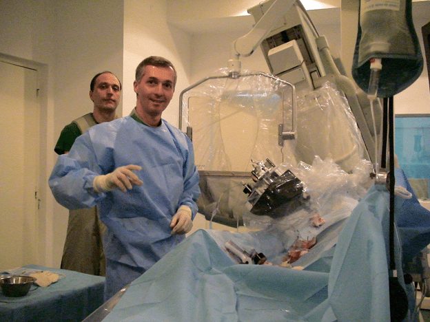 În mod clasic, aceste proceduri sunt efectuate manual, de către un medic operator care avansează, retrage şi practică inflația și endoprotezarea prin instrumente intervenţionale la nivel coronarian, acest medic fiind localizat pe tot timpul procedurii lângă pacient.