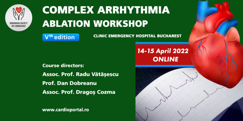 Avem plăcerea să vă invităm în perioada 14-15 aprilie 2022 la Complex Arrythmia Workshop, cu participare internațională, workshop dedicat tratamentului nonfarmacologic al aritmiilor cardiace complexe.