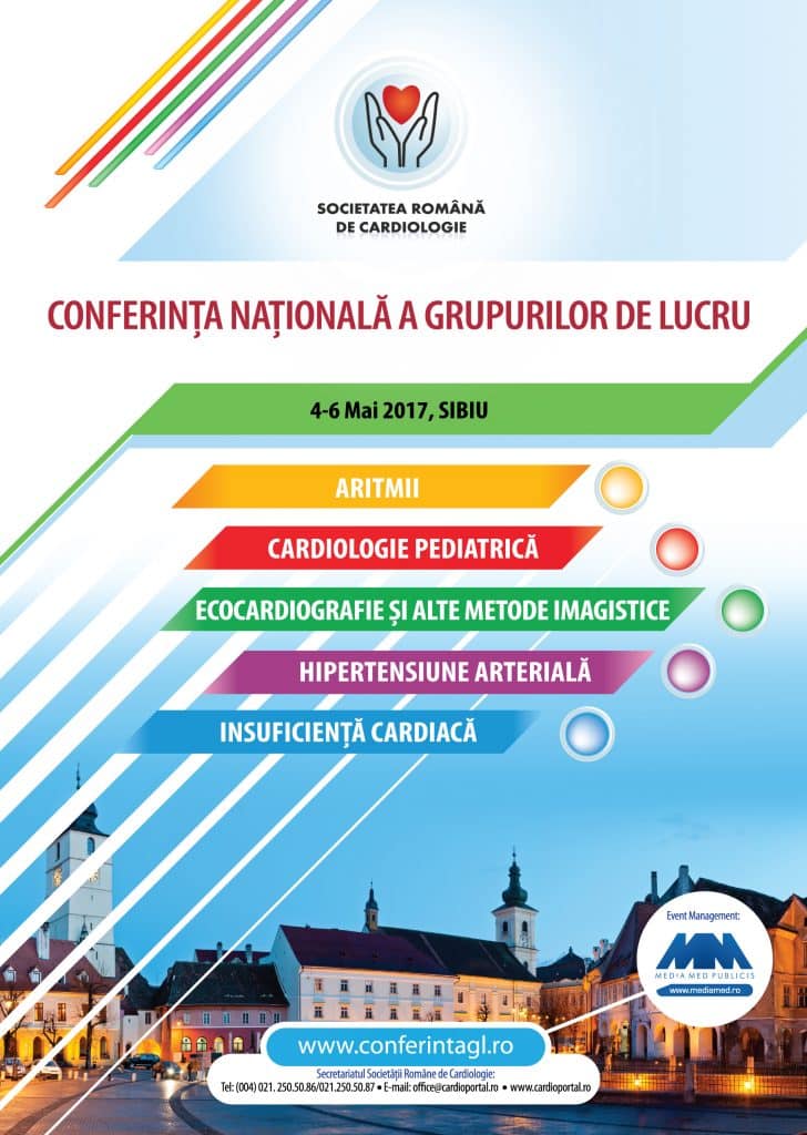 Conferinta Nationala a Grupurilor de Lucru 2017 va avea loc la Sibiu, in perioada 4-6 Mai, la hotel Ramada. Conferinta este creditata cu ore de Educatie Medicala Continua de Colegiul Medicilor din Romania.