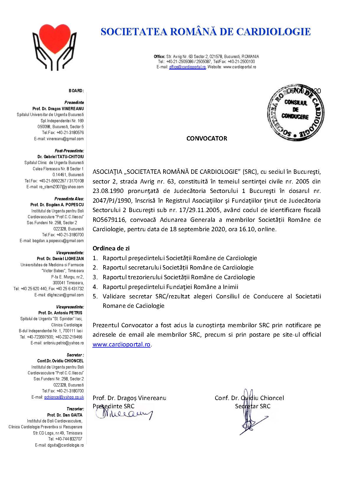 CONVOCATOR ADUNARE GENERALA ONLINE 18 SEPTEMBRIE 2020