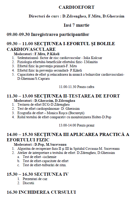 CURS – CARDIOEFORT (Efortul Fizic si Bolile Cardiovasculare), 7 martie 2014, Iasi