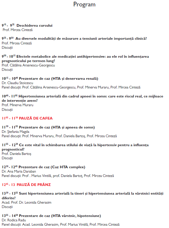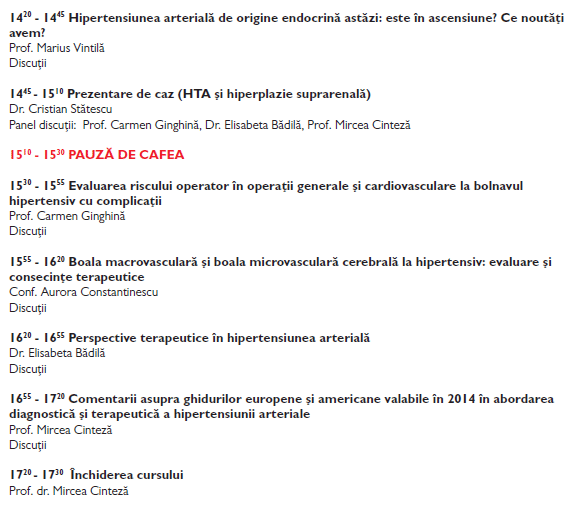 Va invita la cursulHIPERTENSIUNEA ARTERIALA - DE LA GHIDURI LA PRACTICA - 20 martie 2014