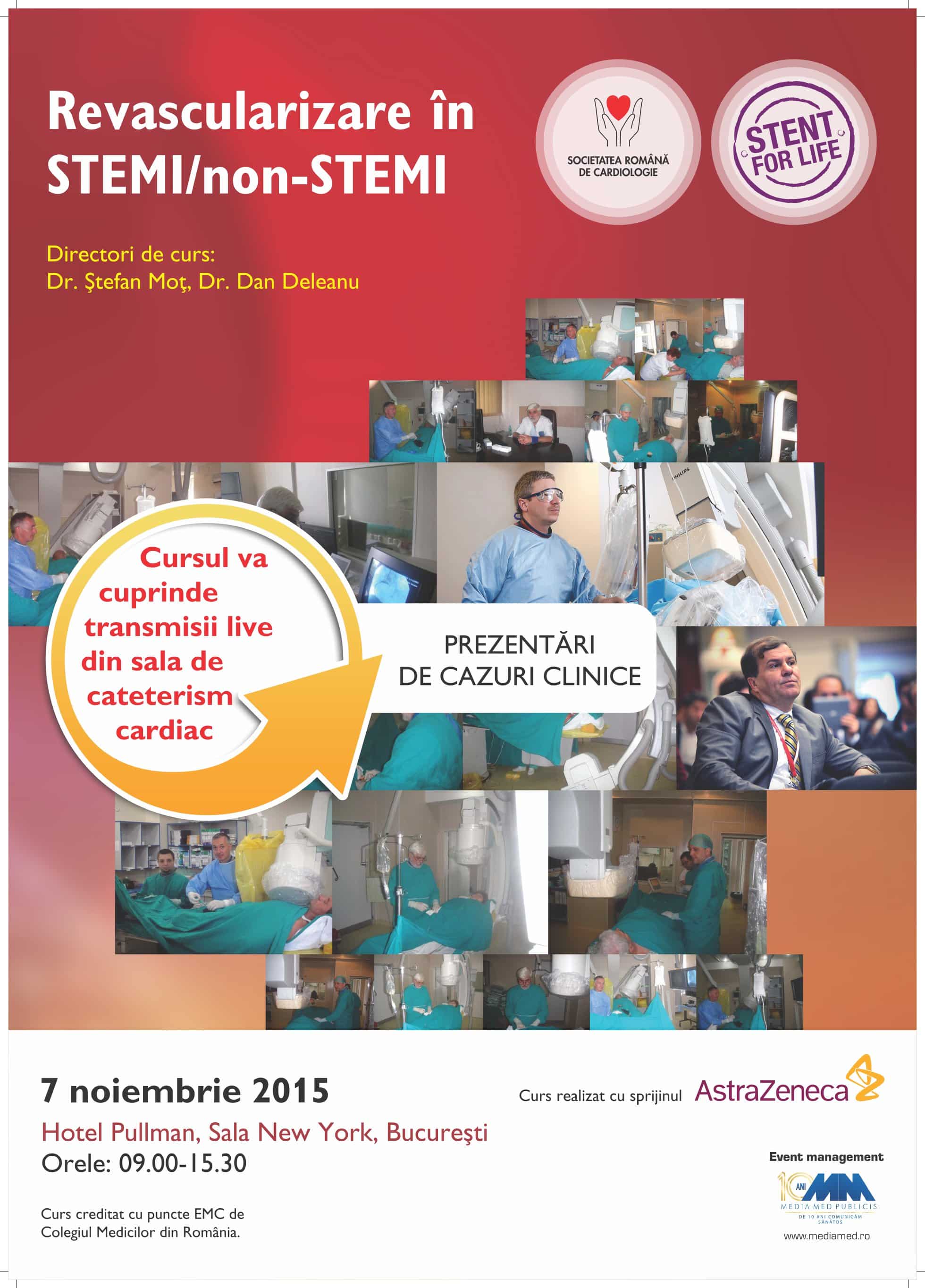 Cursul Revascularizare în STEMI/non-STEMI. Cazuri clinice în direct va fi transmis live pe www.mediamed.ro! Va invitam sa va inscrieti pana la data de 6 noiembrie trimitand adresa de e-mail si CNP-ul pe adresa office@mediamed.ro. Acestea vor fi datele dvs. de logare. Numarul de locuri este limitat!