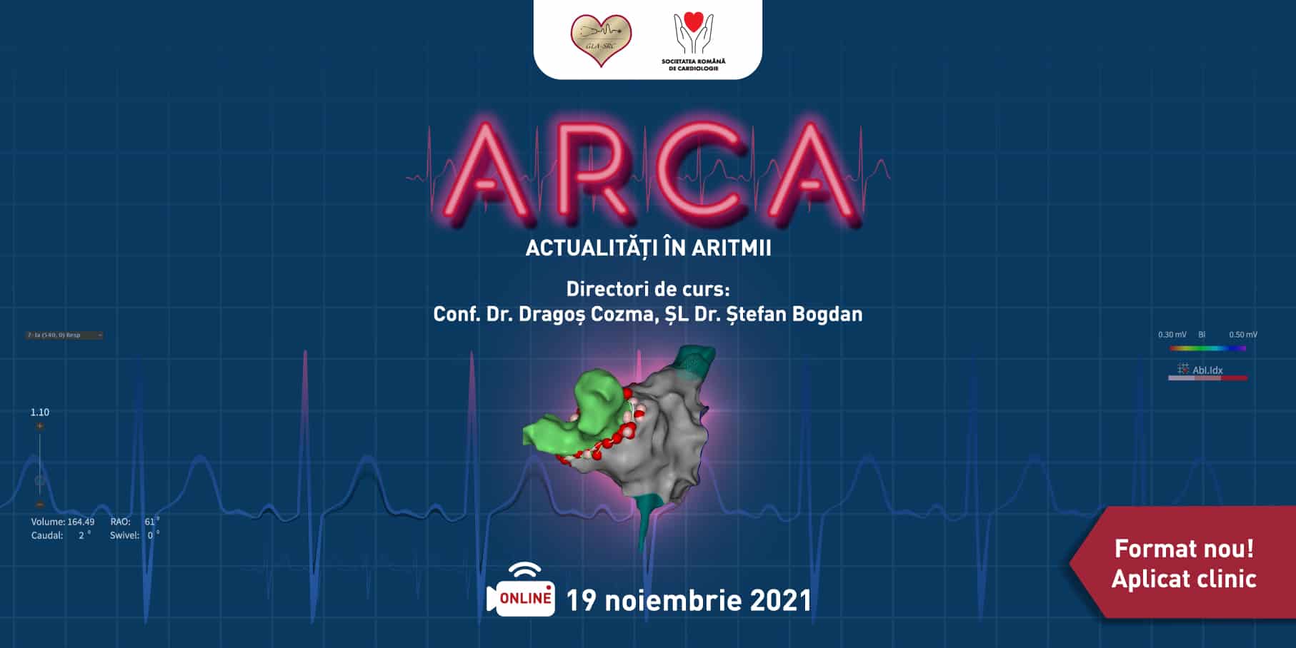 Vă invităm să participați alături de noi în data de 19 noiembrie 2021 la a doua ediție online a Cursului ARCA dedicat aritmiilor cardiace, organizat de Grupul de Lucru Aritmii din cadrul Societății Române de Cardiologie.
