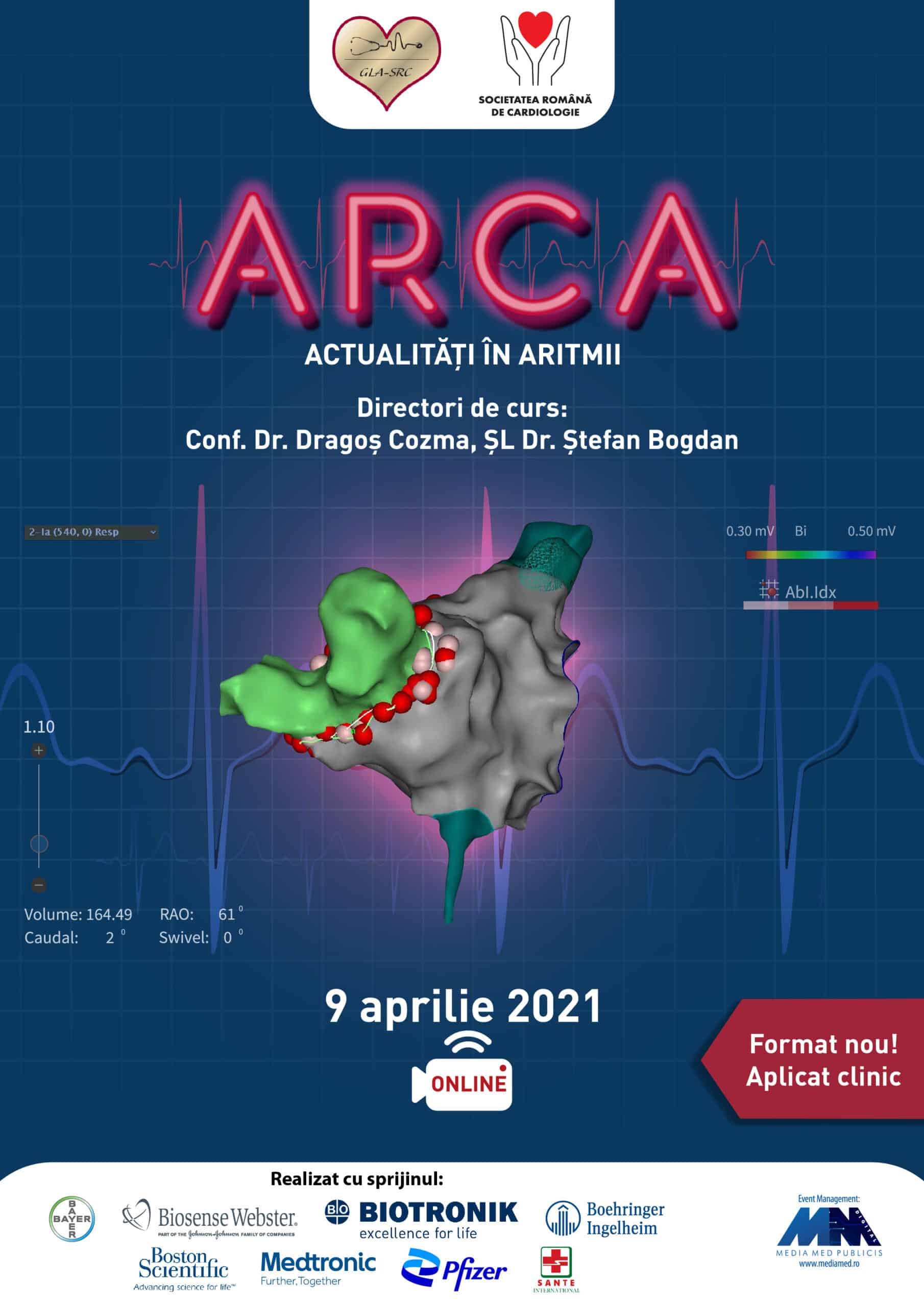 Vă invităm să participați alături de noi în data de 9 aprilie 2021 la prima ediție online a Cursului ARCA dedicat aritmiilor cardiace, organizat de Grupul de Lucru Aritmii din cadrul Societății Române de Cardiologie.