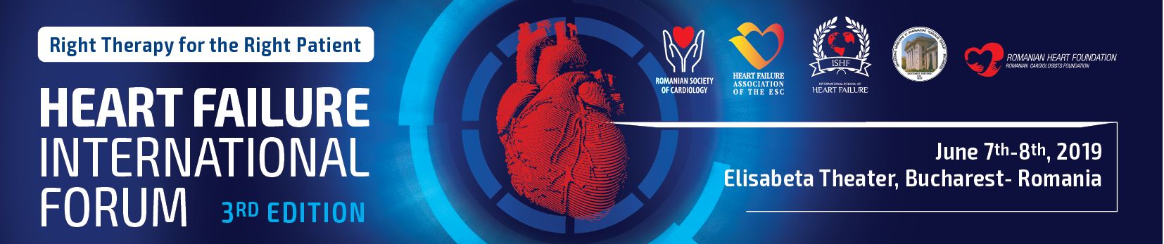 Societatea Română de Cardiologie, în parteneriat cu Şcoala Internaţională de Insuficienţă Cardiacă, Universitatea de Medicină şi Farmacie Carol Davila Bucureşti şi Fundaţia Română a Inimii, vă invită să participaţi la cea de-a treia ediţie a Forumului Internaţional de Insuficienţă Cardiacă – Pacienţi şi Terapii (Heart Forum International Forum – Right Therapy for the Right Patient), care va avea loc în perioada 7-8 iunie 2019, la Teatrul Elisabeta din Bucureşti (Bld. Regina Elisabeta, nr. 45, zona Cişmigiu).