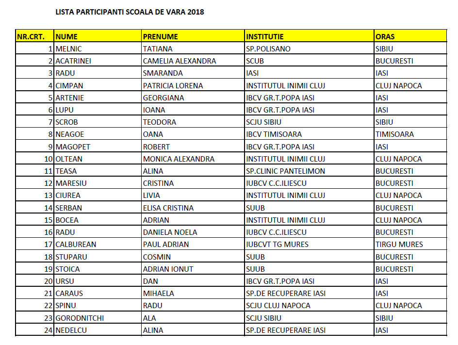 Scoala de Vara a Tinerilor Cardiologi – 2018