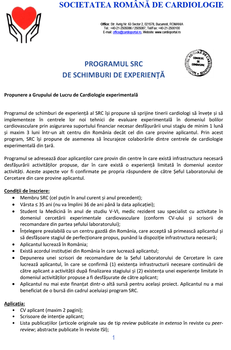 - Formular înscriere în Societatea Română de Cardiologie a studenţilor la medicină