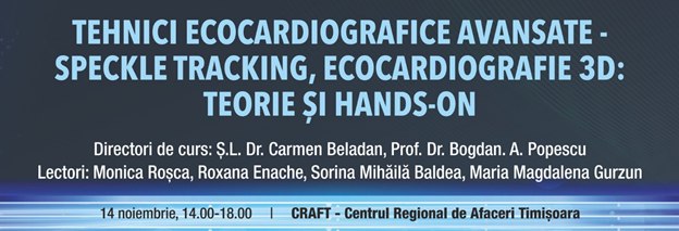 Societatea Română de Cardiologie şi Grupul de Lucru de Ecocardiografie și alte Metode Imagistice vă invită să participaţi la cursul “Imagistica multimodală în cardiologie - unde, când, cum?” ce va avea loc vineri, 15 noiembrie 2019, la CRAFT – Centrul Regional de Afaceri, Timişoara.