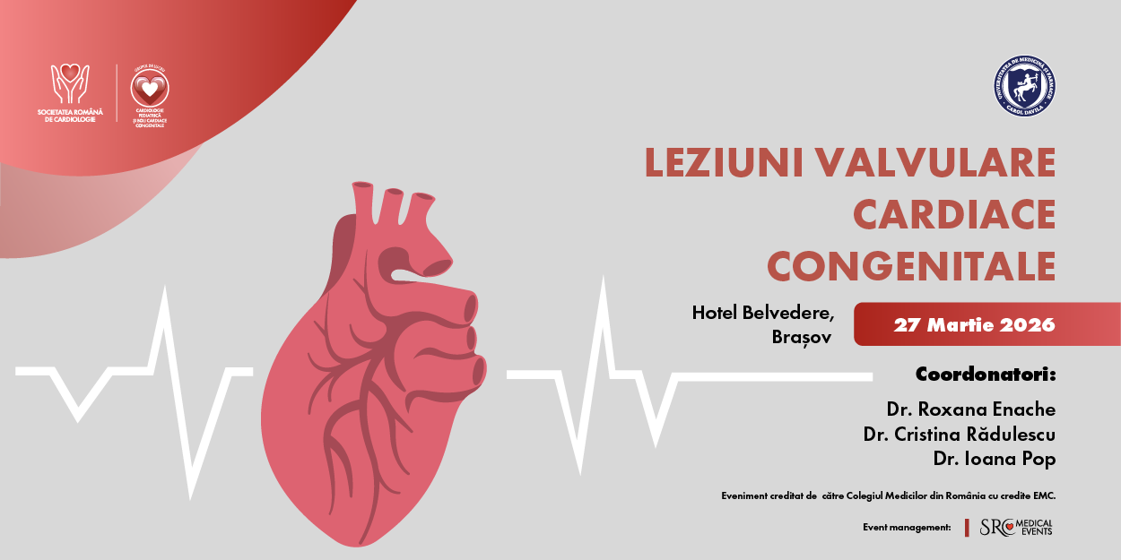 Societatea Română de Cardiologie vă invită la evenimentul „LEZIUNI VALVULARE CARDIACE CONGENITALE” ce se va desfășura în format fizic, la hotel Belvedere, Brașov, în data de 27 martie 2026.