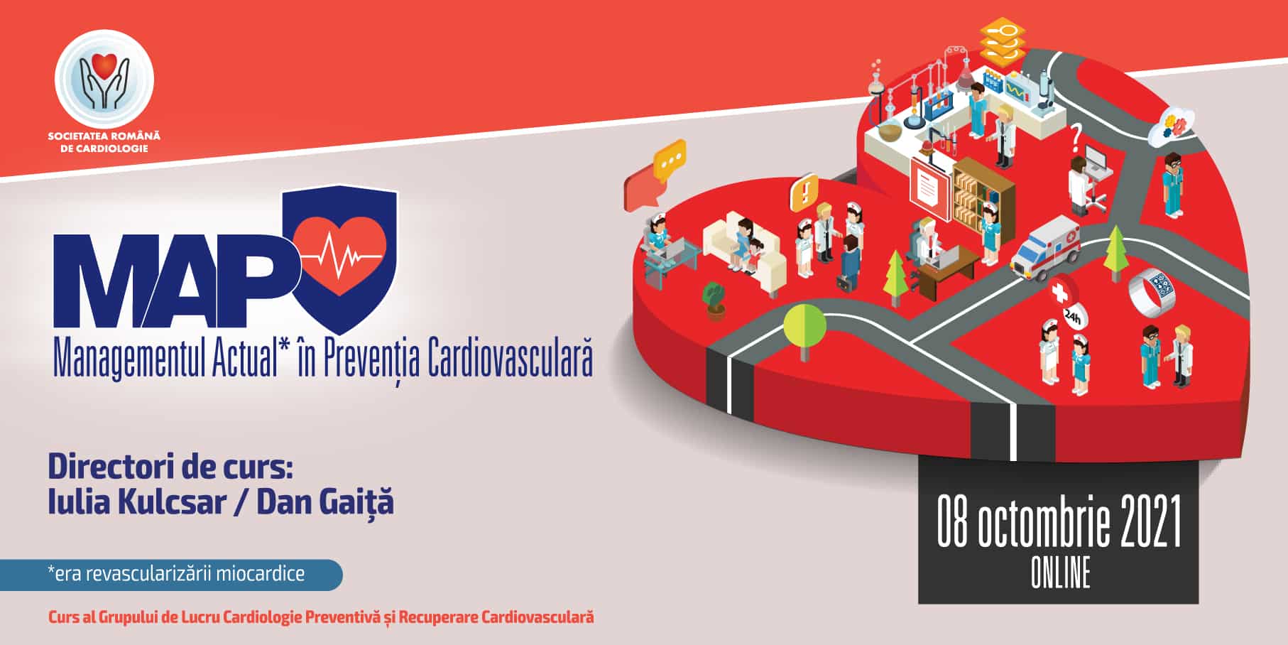 Societatea Română de Cardiologie vă invită să participaţi la cea de-a VIII a ediţie a cursului MAP – Managementul Actual* ȋn Prevenţia Cardiovasculară (*era revascularizării miocardice), vineri, 8 octombrie 2021.