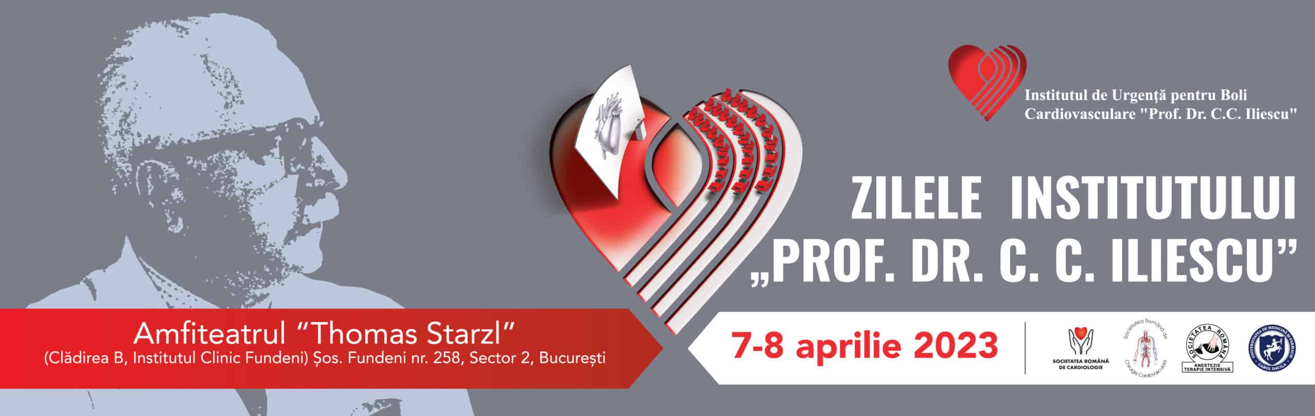 Institutul de Urgență pentru Boli Cardiovasculare ’’Prof. Dr. C.C. Iliescu’’ are plăcerea de a vă invita să participați la Zilele Institutului ’’Prof. Dr. C.C. Iliescu’’, ce va avea loc în format fizic, în Amfiteatrul ‚,Thomas Starzl’’ (Clădirea B, Institutul Clinic Fundeni – Șoș. Fundeni nr. 258, Sector 2, București) în perioada 7-8 aprilie 2023.